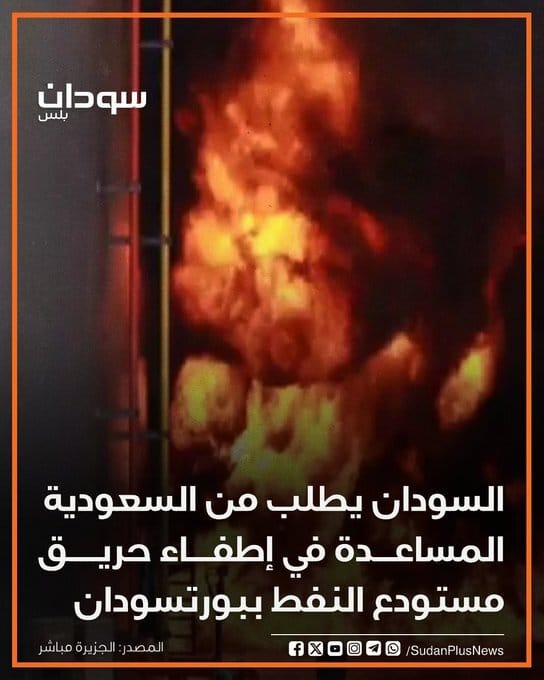وزير الاعلام السوداني - خالد الأعيسر - من أمام حرائق بورتسودان. المصدر: الجزيرة